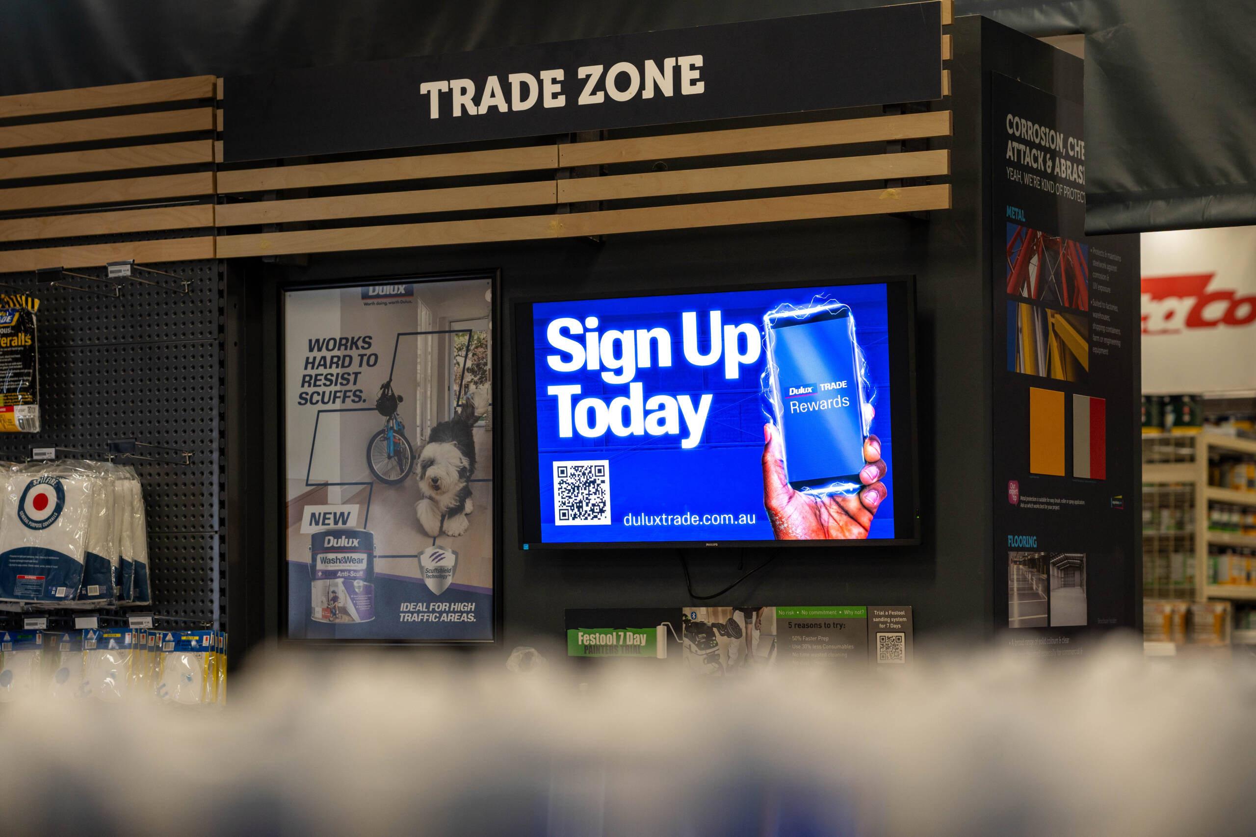 Aria Digital installed LCD screens in both retail and trade areas, supported by a digital signage platform that allows head office to manage campaigns centrally while still supporting local messaging.